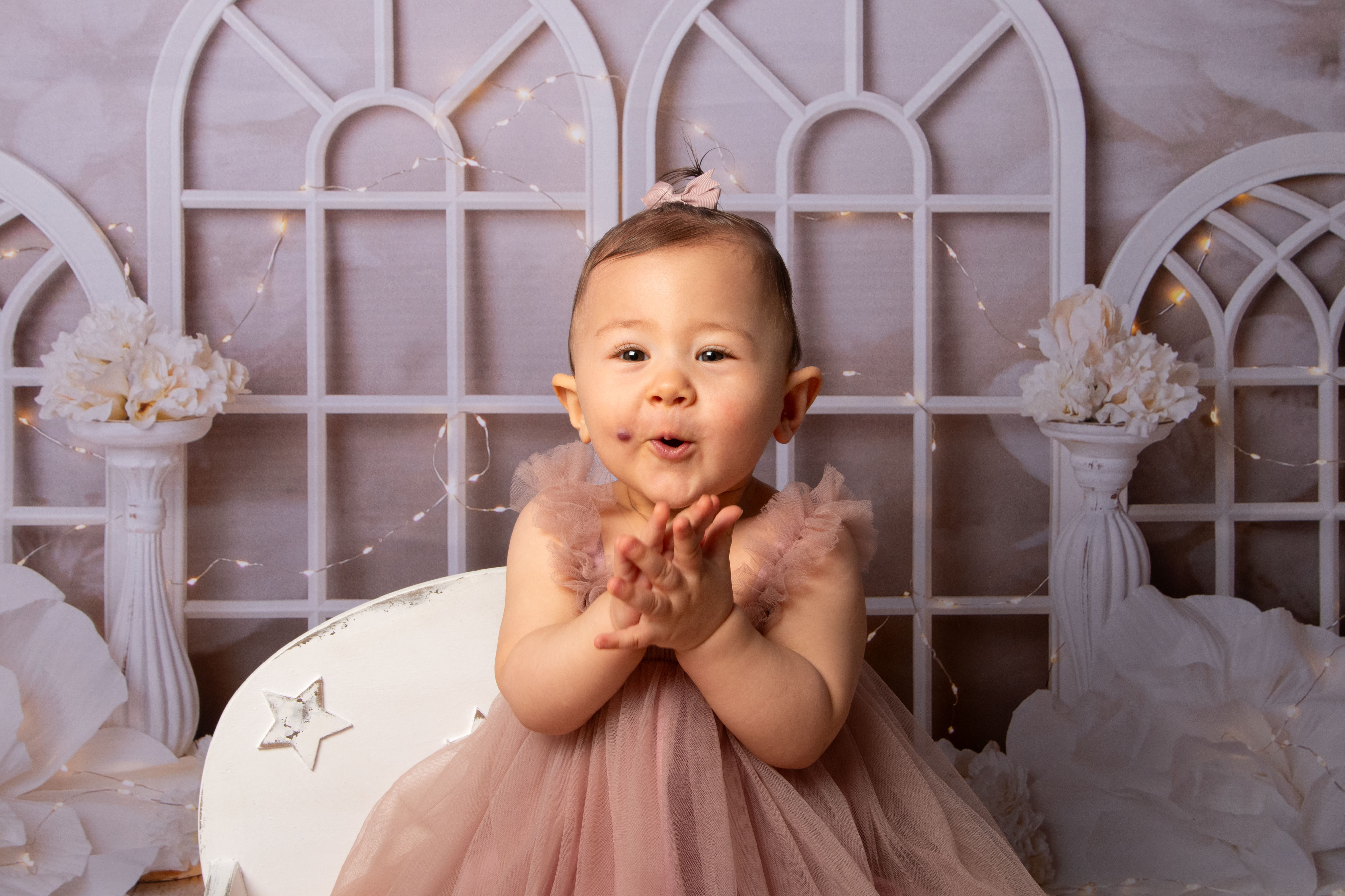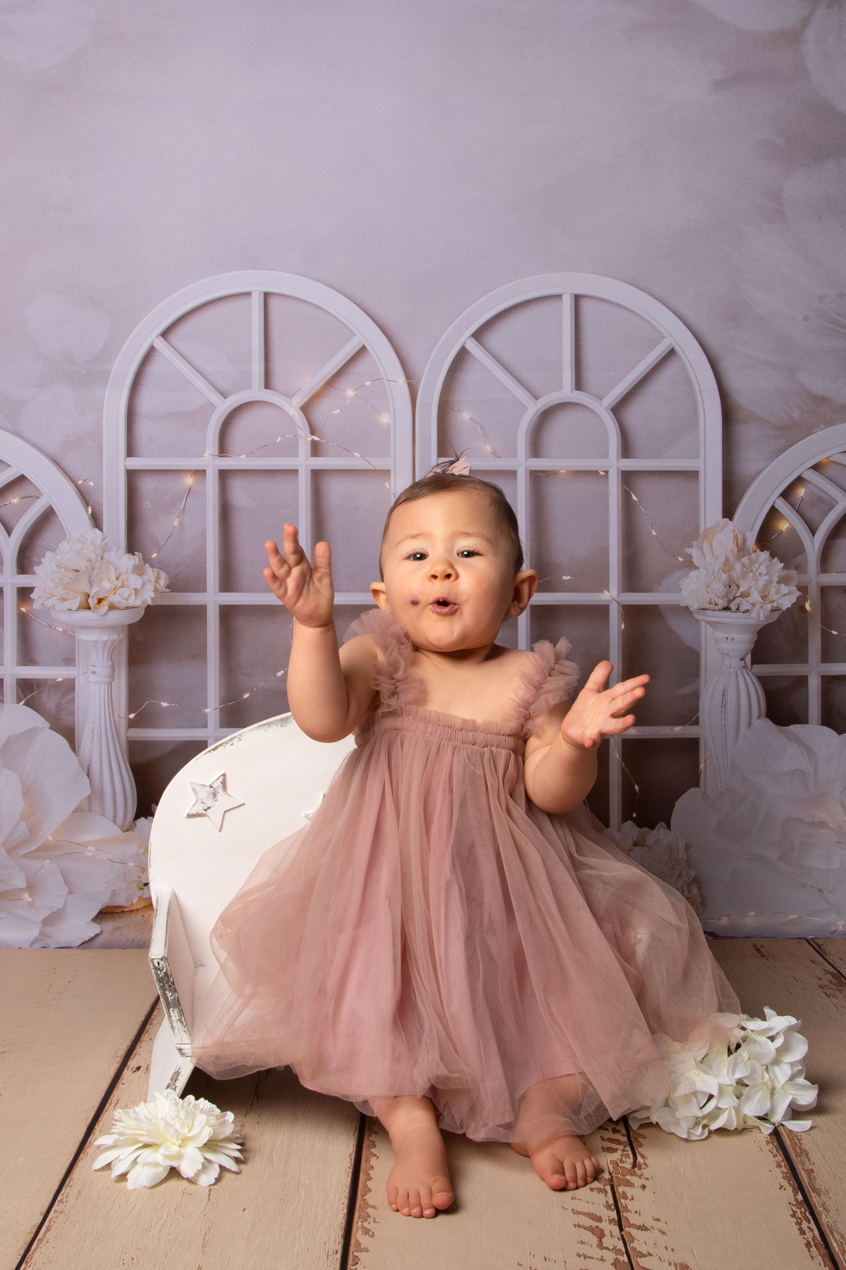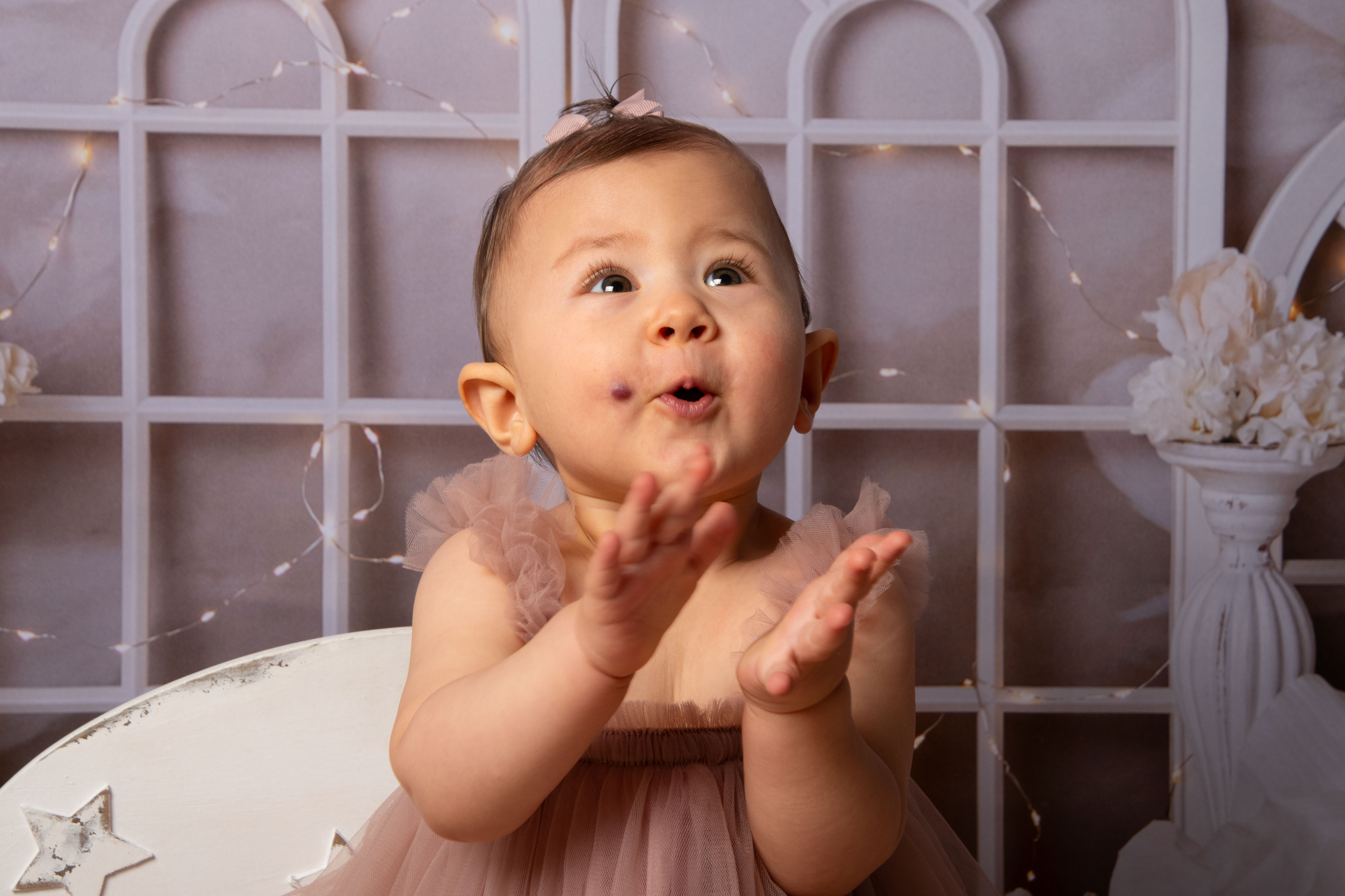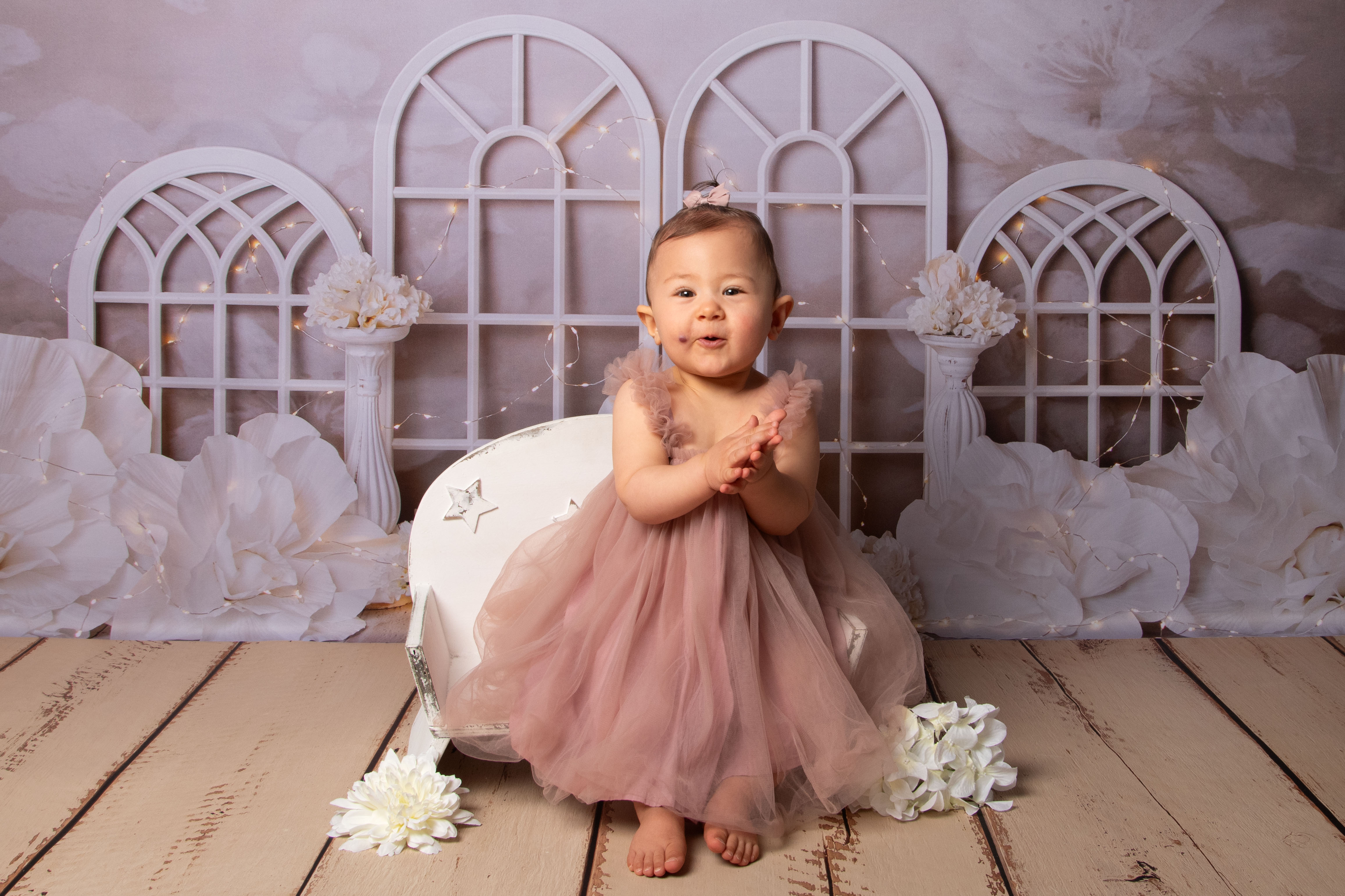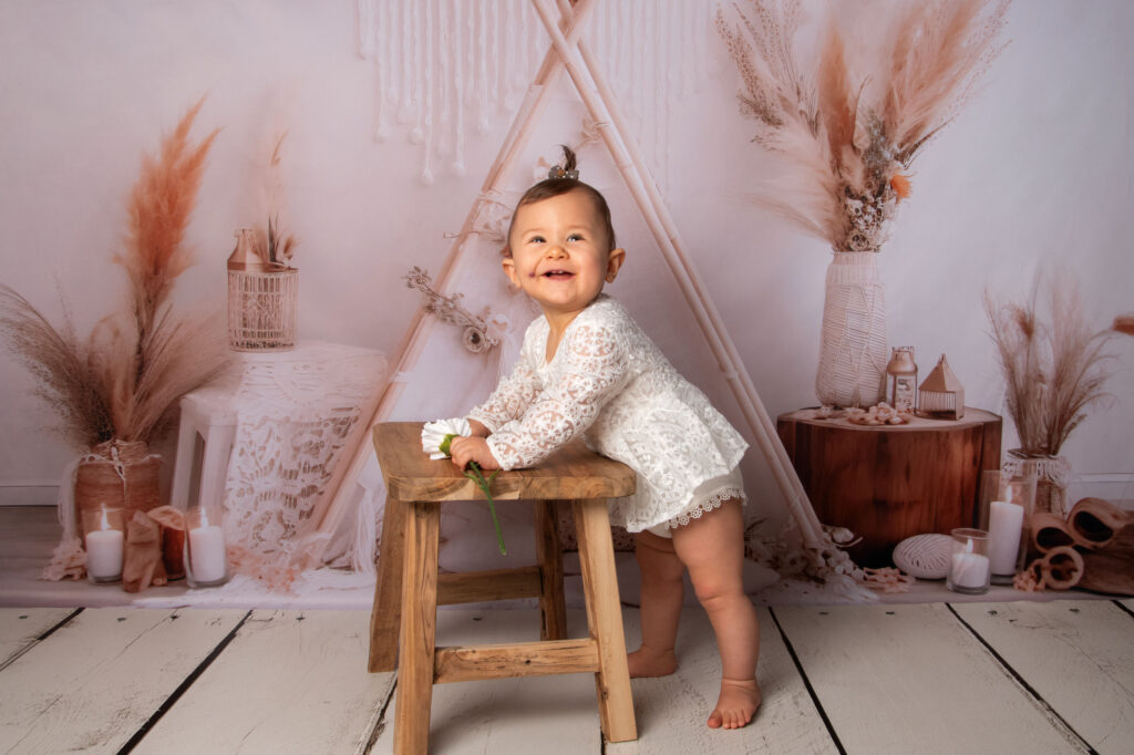 Pour Les 1 an, 2 ans ou 3ans de votre bébé, vous pouvez réserver 1 séance happy birthday, plusieurs décors sont disponibles, ainsi que des tenues. Pour les tailles et tenues disponibles au studio et selon les décors, il faut voir directement aves moi lors de la réservation. A la fin de la séance nous faisons quelques photos en famille sur un fond beige uni.