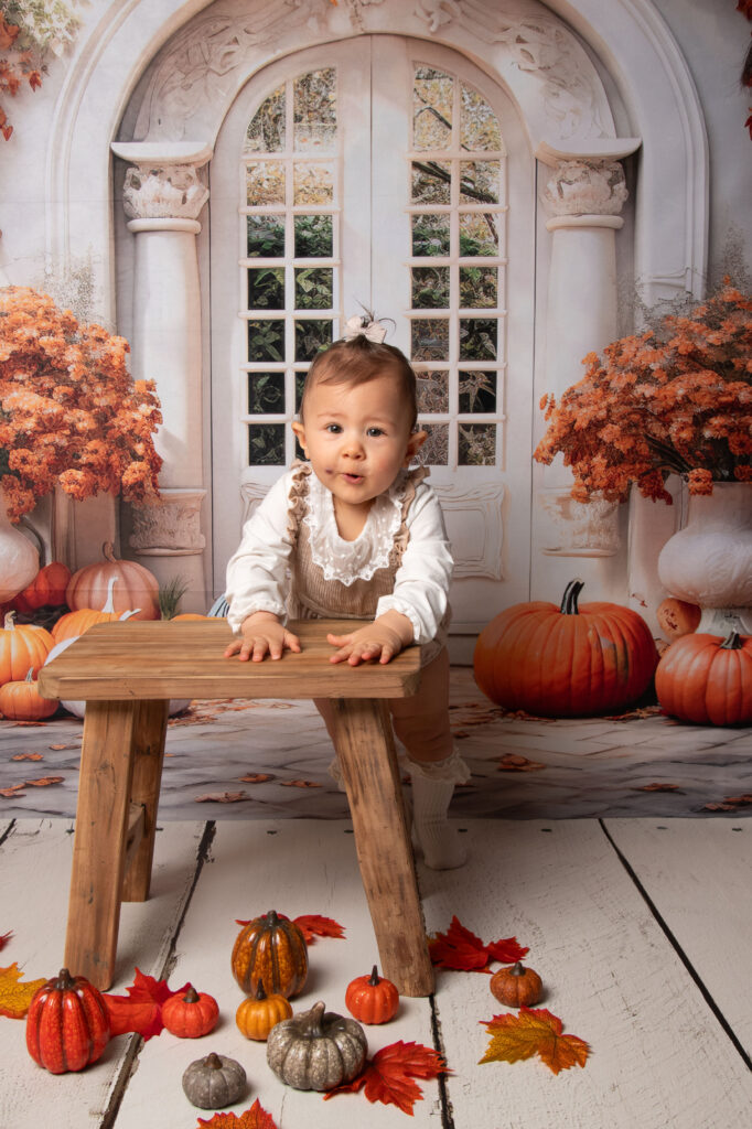 A partir de 6 mois jusque 11 mois quand bébé tient correctement assis et seul sans soutient. Nous faisons la séance dans le rythme de bébé, sur différents décors et dans différents contenants ou assis sur le sol. Des tenues sont disponible au studio, il vaut mieux directement voir avec moi les tailles et tenues disponibles selon les décors lors de la réservation. A la fin de la séance nous faisons quelques photos en famille sur un fond beige uni.