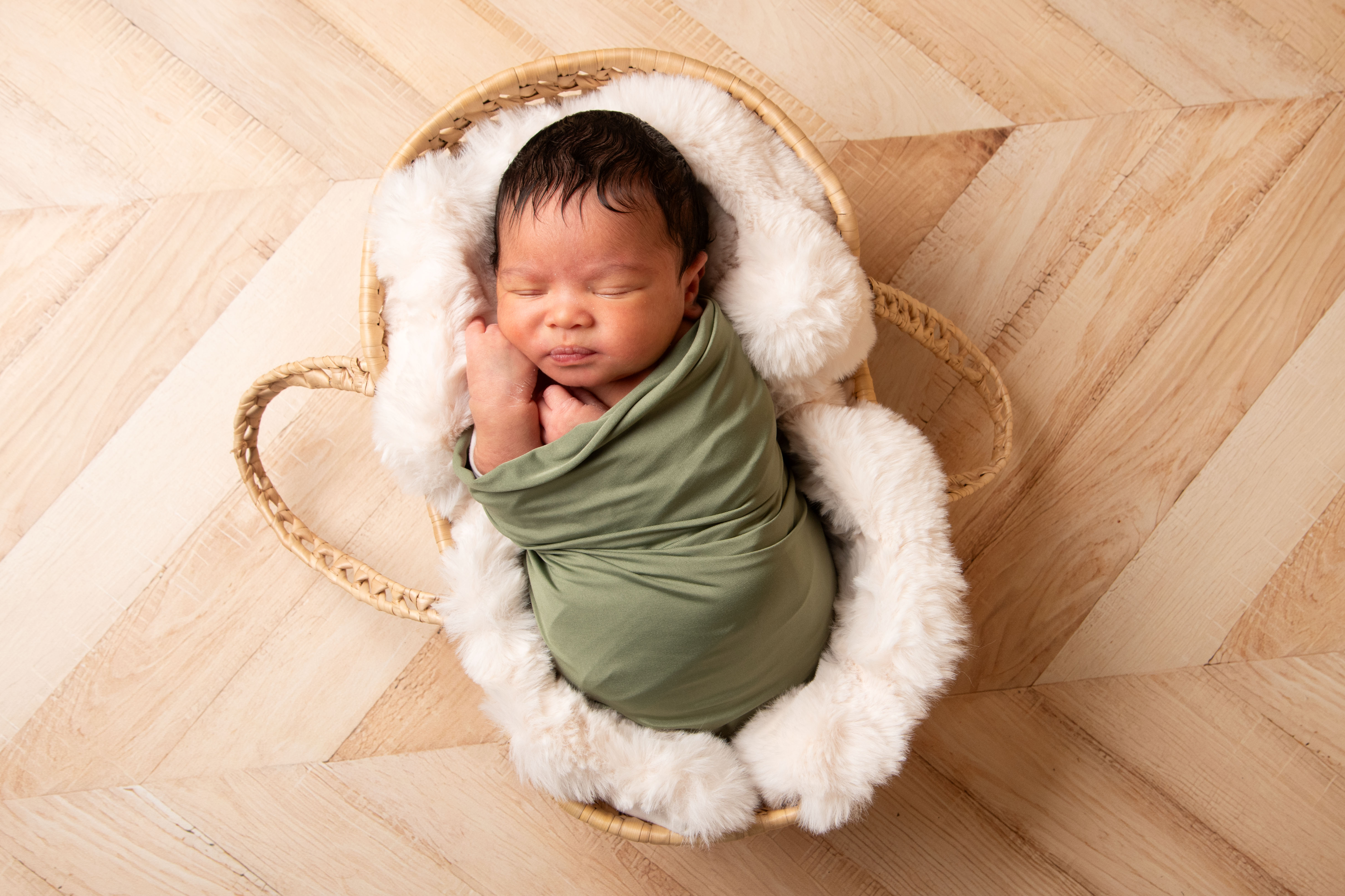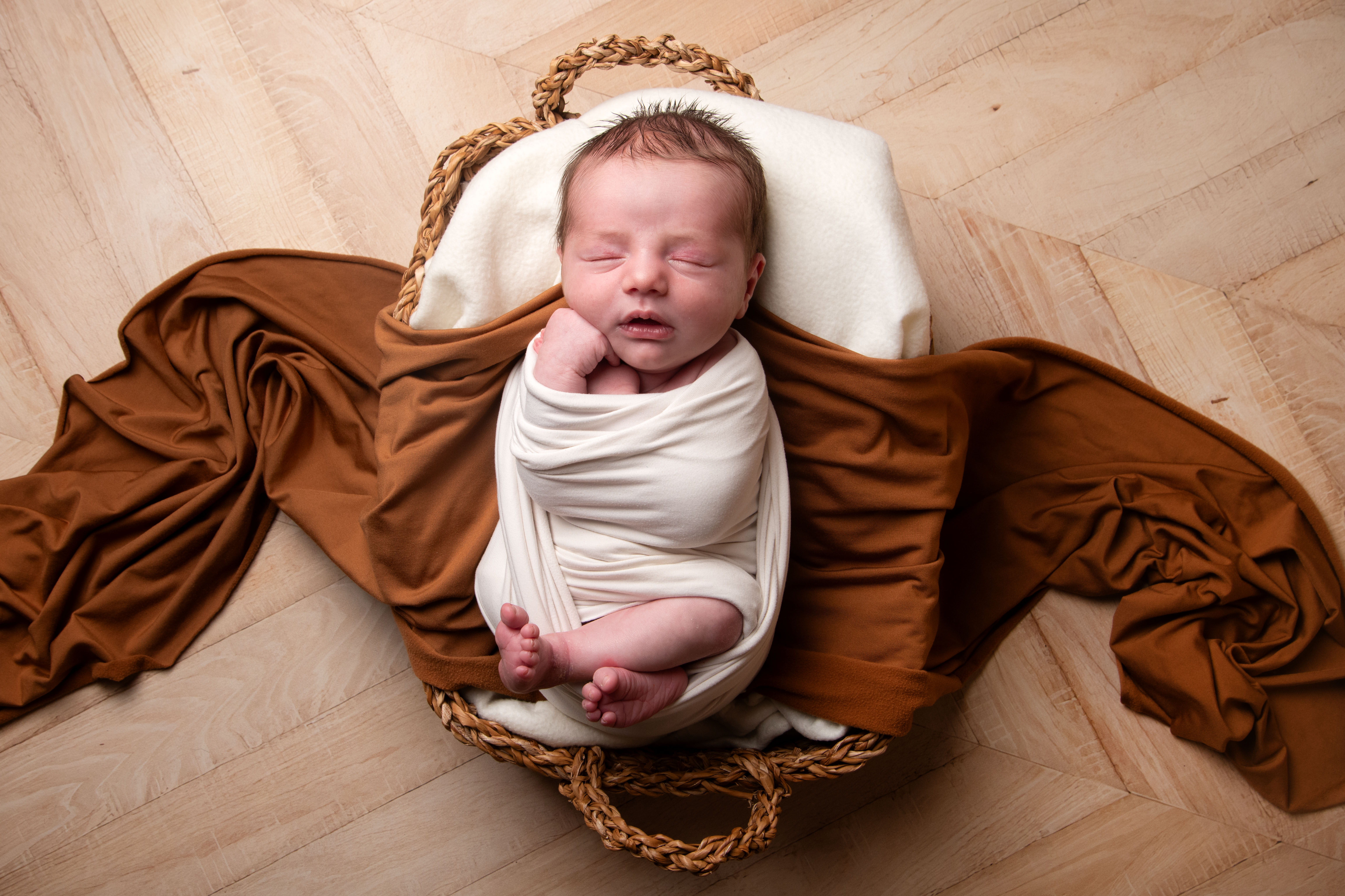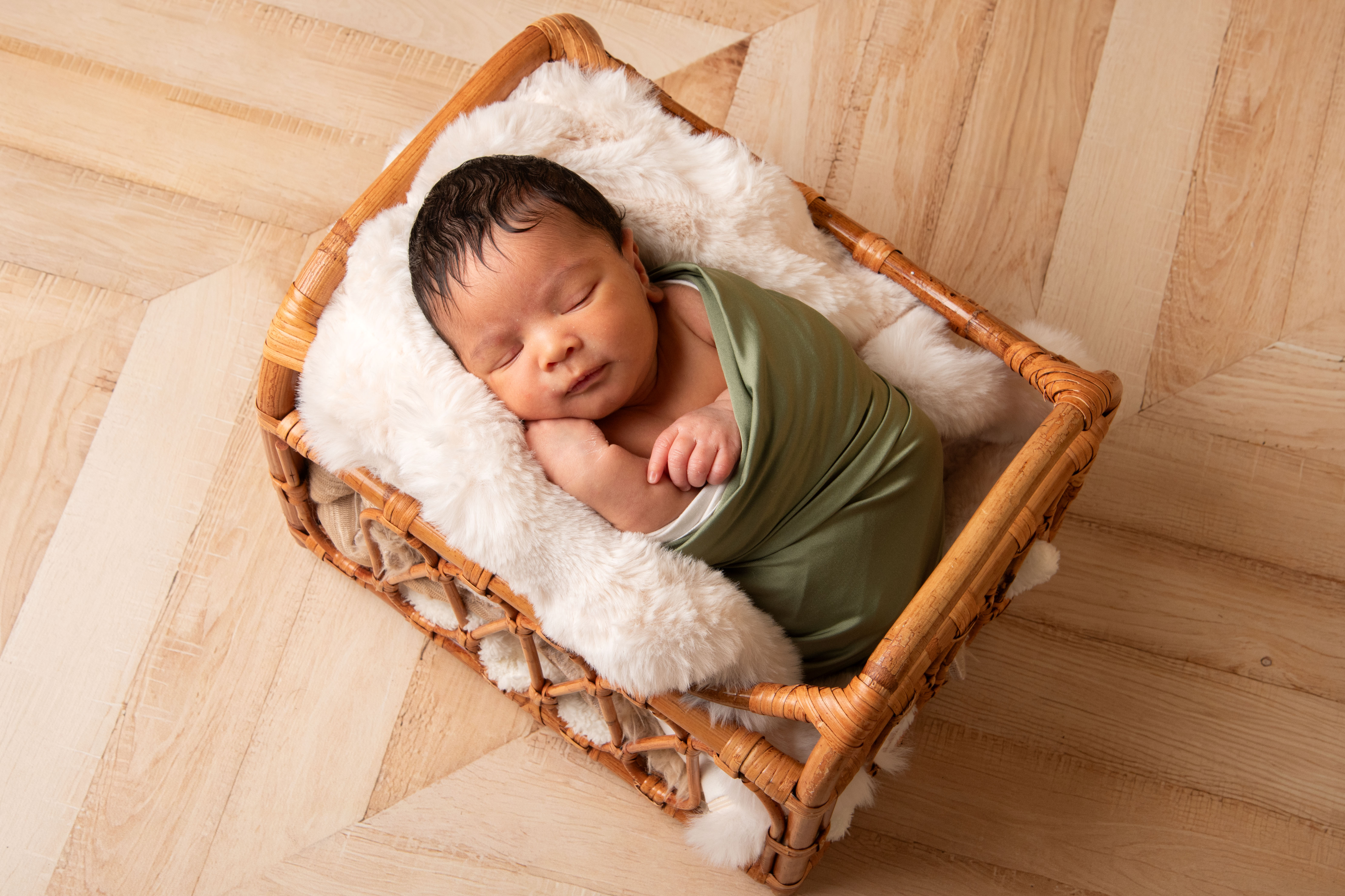Tout est prévu pour que votre bébé se sente bien, qu’il soit apaisé, et qu’il passe le plus clair de la séance à dormir s’il le souhaite. La chaleur est constamment contrôlée pour qu’il soit à l’aise puisqu’il ne régule pas encore sa température tout seul. La séance peut parfois être longue, prévoyez de quoi grignoter pour vous ou à boire, car si bébé souhaite être nourri ou changé, la séance sera mise sur pause, et nous prendrons le temps qu’il faut, car c’est bébé qui rythme la séance. Bien évidemment, la sécurité de votre enfant est ma première préoccupation vous ne verrez jamais de pose qui pourrait mettre en danger votre enfant ou qui ne respecterait pas sa physiologie dans mon studio! Un bébé bien installé et en sécurité est le plus important. Il est inutile pour moi de le mettre dans des positions extraordinaires pour faire des photos incroyables: Votre enfant à lui tout seul est DEJA hors du commun ! Il se suffit donc à lui même et mes images restent simples et confortables pour bébé. Dans un premier temps, je vais emmailloter bébé, le mettre à l’aise car certain préfère sortir les bras et ou jambes. Je fais ce qu’il y a de mieux pour lui. Je le prendrais en photos dans différents contenants, nous pourrons ensuite lui mettre une ou plusieurs petites tenues, et nous finirons par les photos de famille.