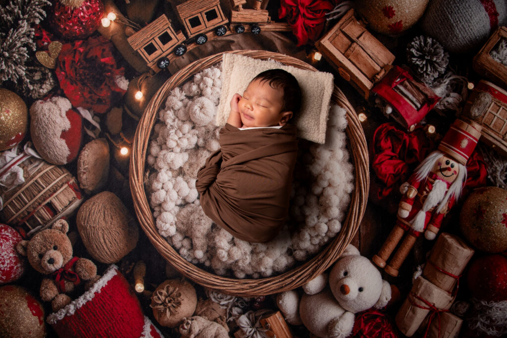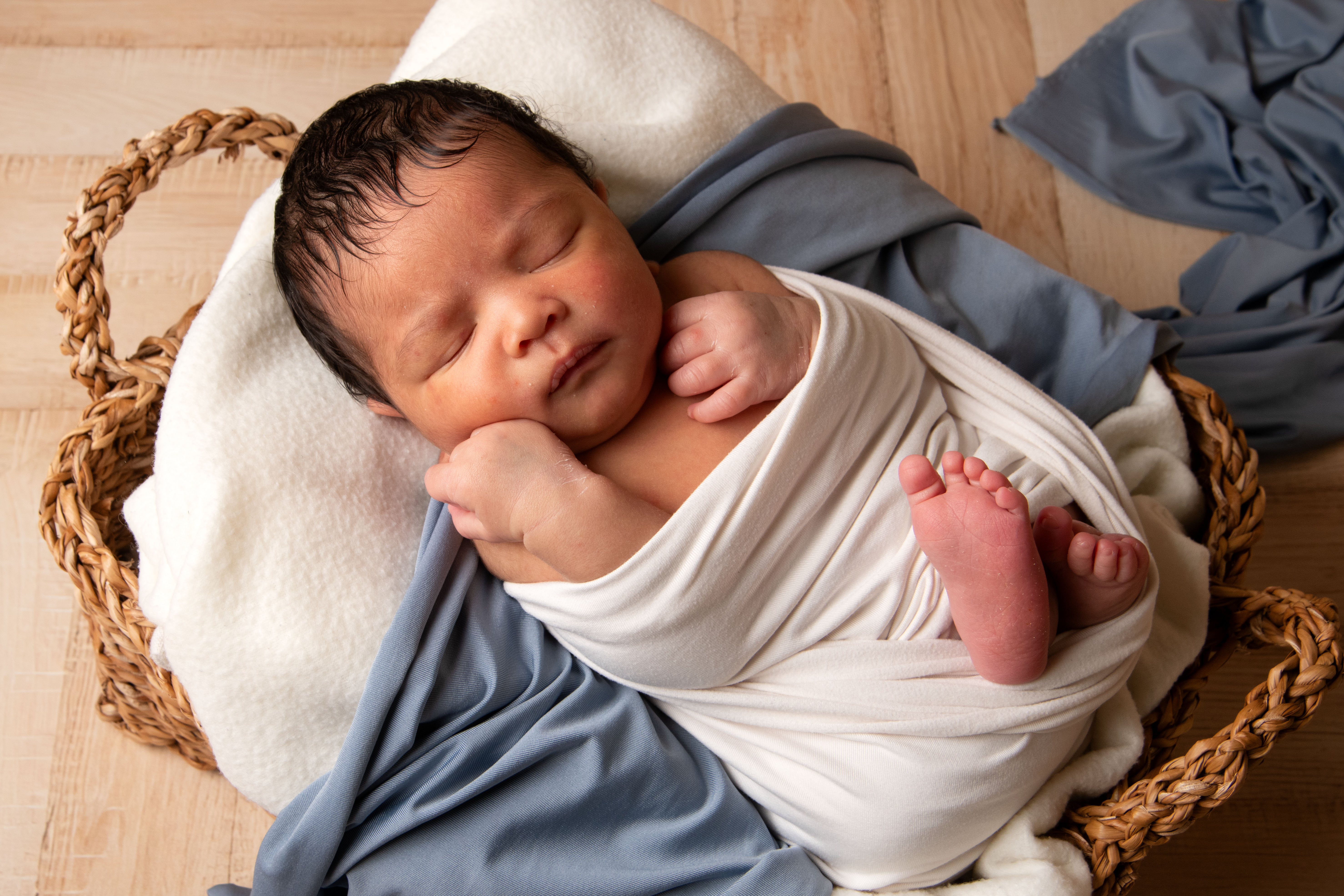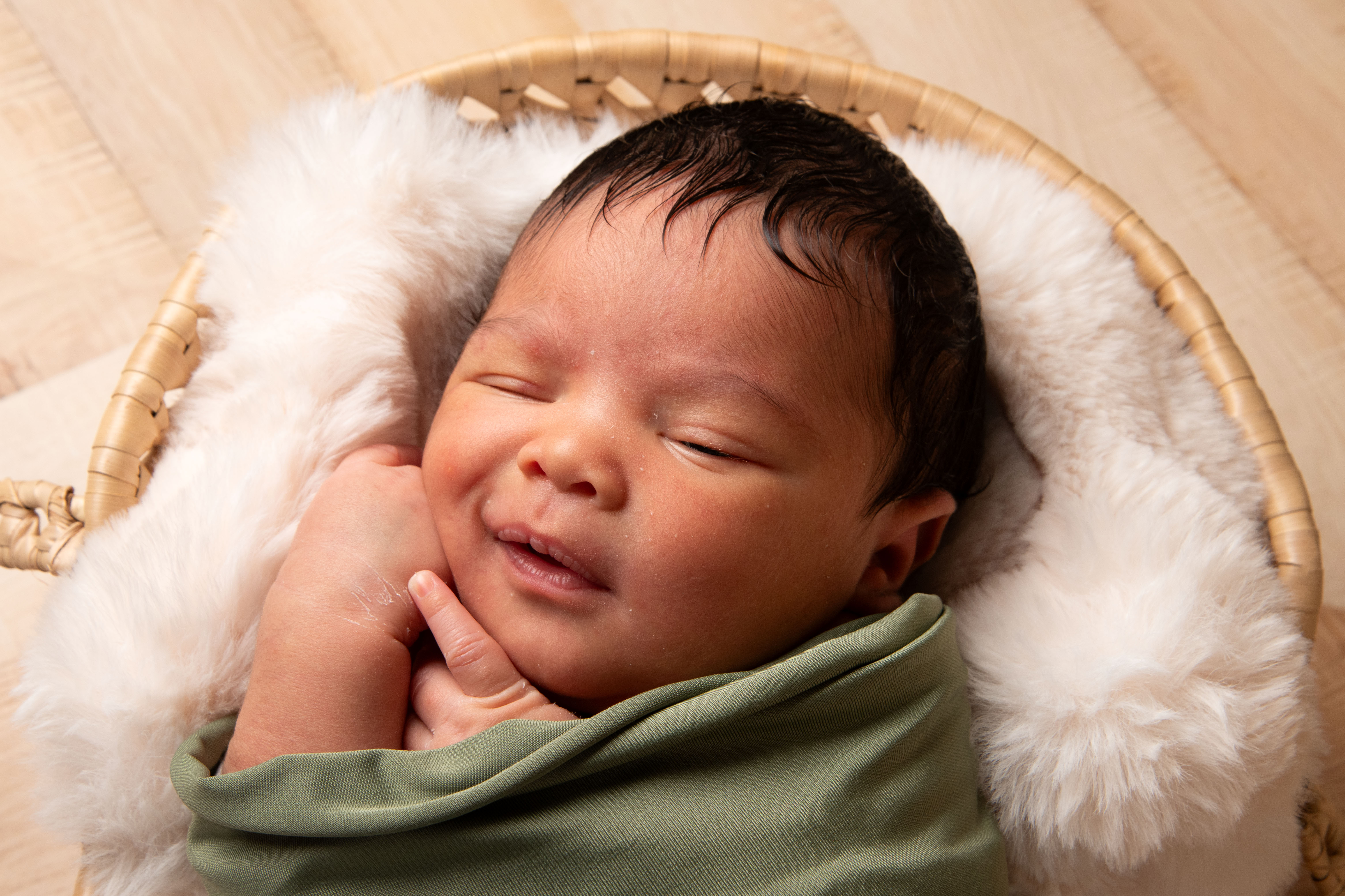 Tout est prévu pour que votre bébé se sente bien, qu’il soit apaisé, et qu’il passe le plus clair de la séance à dormir s’il le souhaite. La chaleur est constamment contrôlée pour qu’il soit à l’aise puisqu’il ne régule pas encore sa température tout seul. La séance peut parfois être longue, prévoyez de quoi grignoter pour vous ou à boire, car si bébé souhaite être nourri ou changé, la séance sera mise sur pause, et nous prendrons le temps qu’il faut, car c’est bébé qui rythme la séance. Bien évidemment, la sécurité de votre enfant est ma première préoccupation vous ne verrez jamais de pose qui pourrait mettre en danger votre enfant ou qui ne respecterait pas sa physiologie dans mon studio! Un bébé bien installé et en sécurité est le plus important. Il est inutile pour moi de le mettre dans des positions extraordinaires pour faire des photos incroyables: Votre enfant à lui tout seul est DEJA hors du commun ! Il se suffit donc à lui même et mes images restent simples et confortables pour bébé. Dans un premier temps, je vais emmailloter bébé, le mettre à l’aise car certain préfère sortir les bras et ou jambes. Je fais ce qu’il y a de mieux pour lui. Je le prendrais en photos dans différents contenants, nous pourrons ensuite lui mettre une ou plusieurs petites tenues, et nous finirons par les photos de famille.