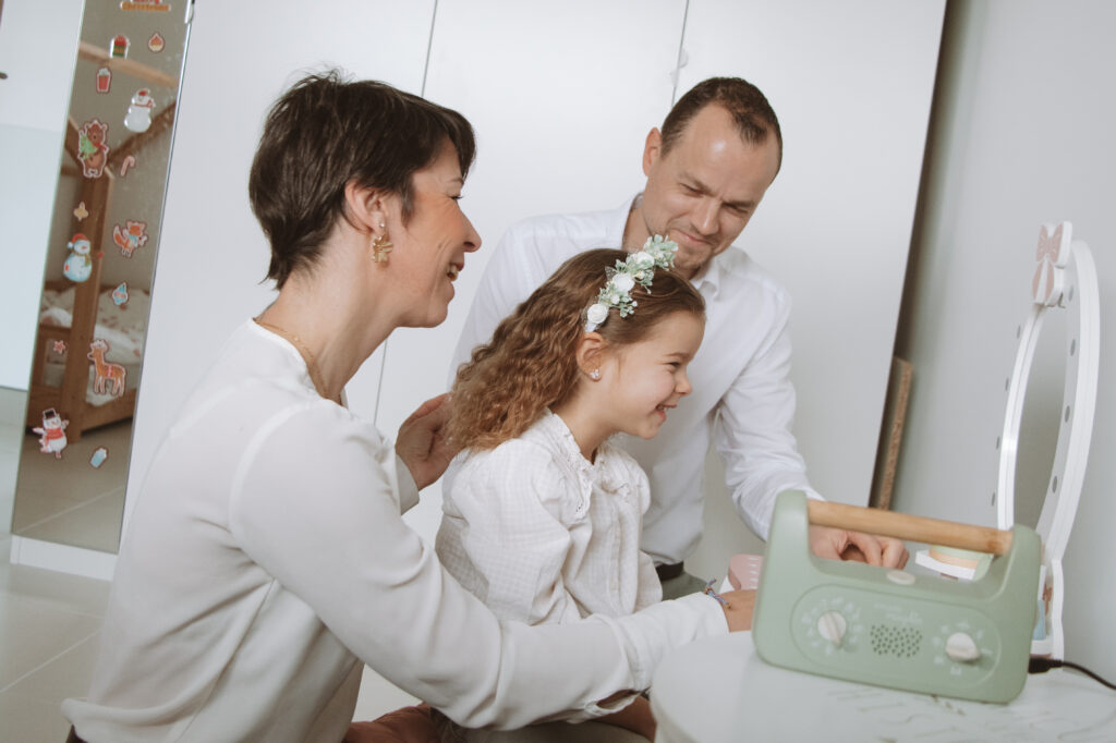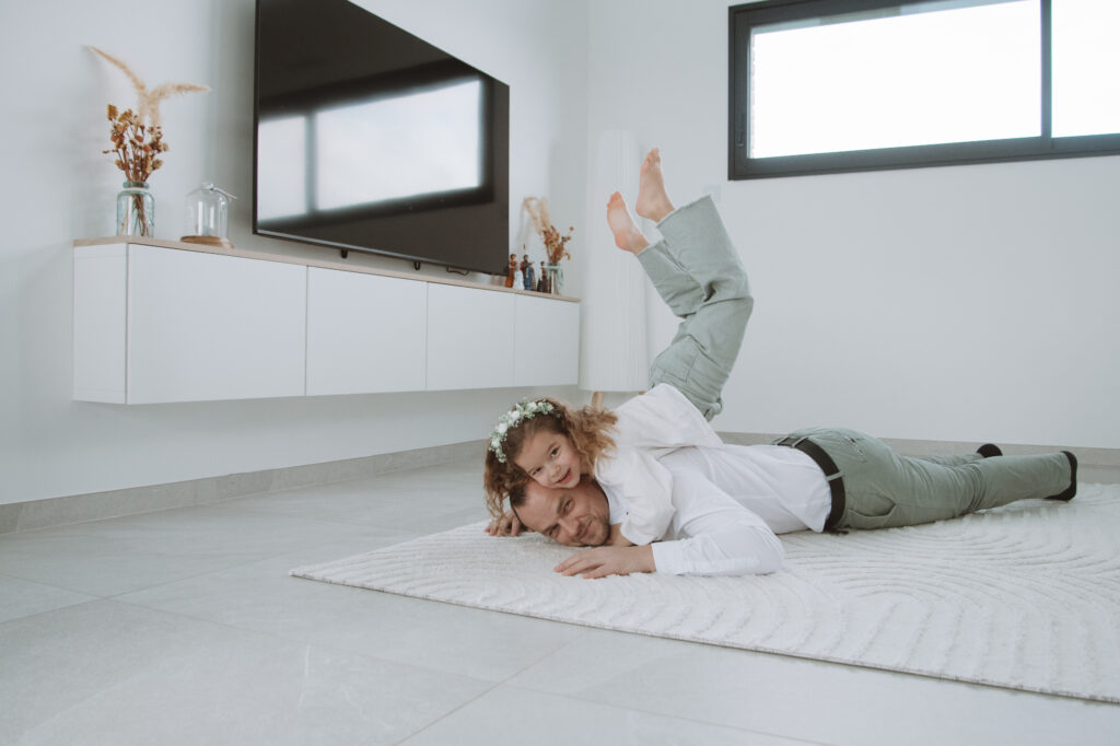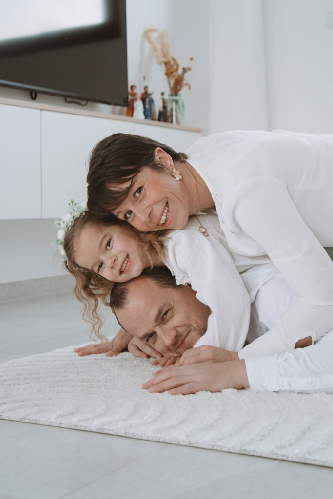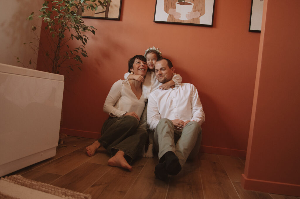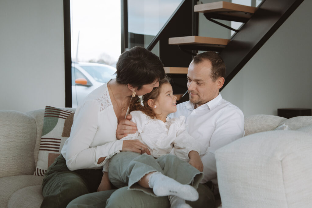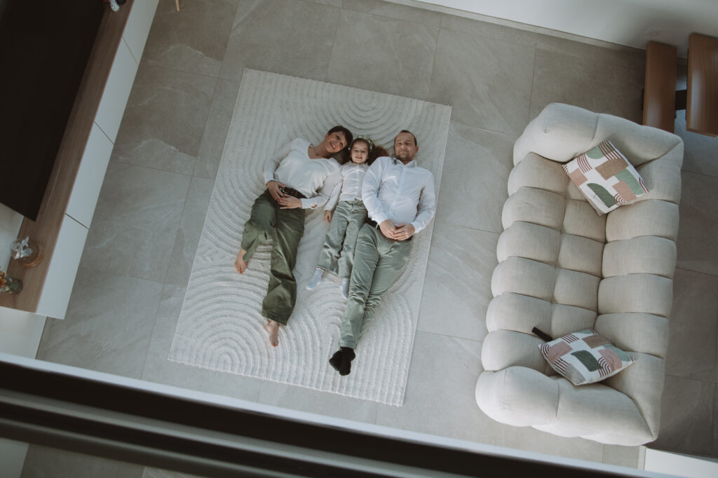 Pas de studio, pas de poses figées… seulement des moments authentiques : les rires dans le salon, les câlins sur le canapé, les jeux avec les enfants, la douceur du quotidien que l’on oublie trop vite!