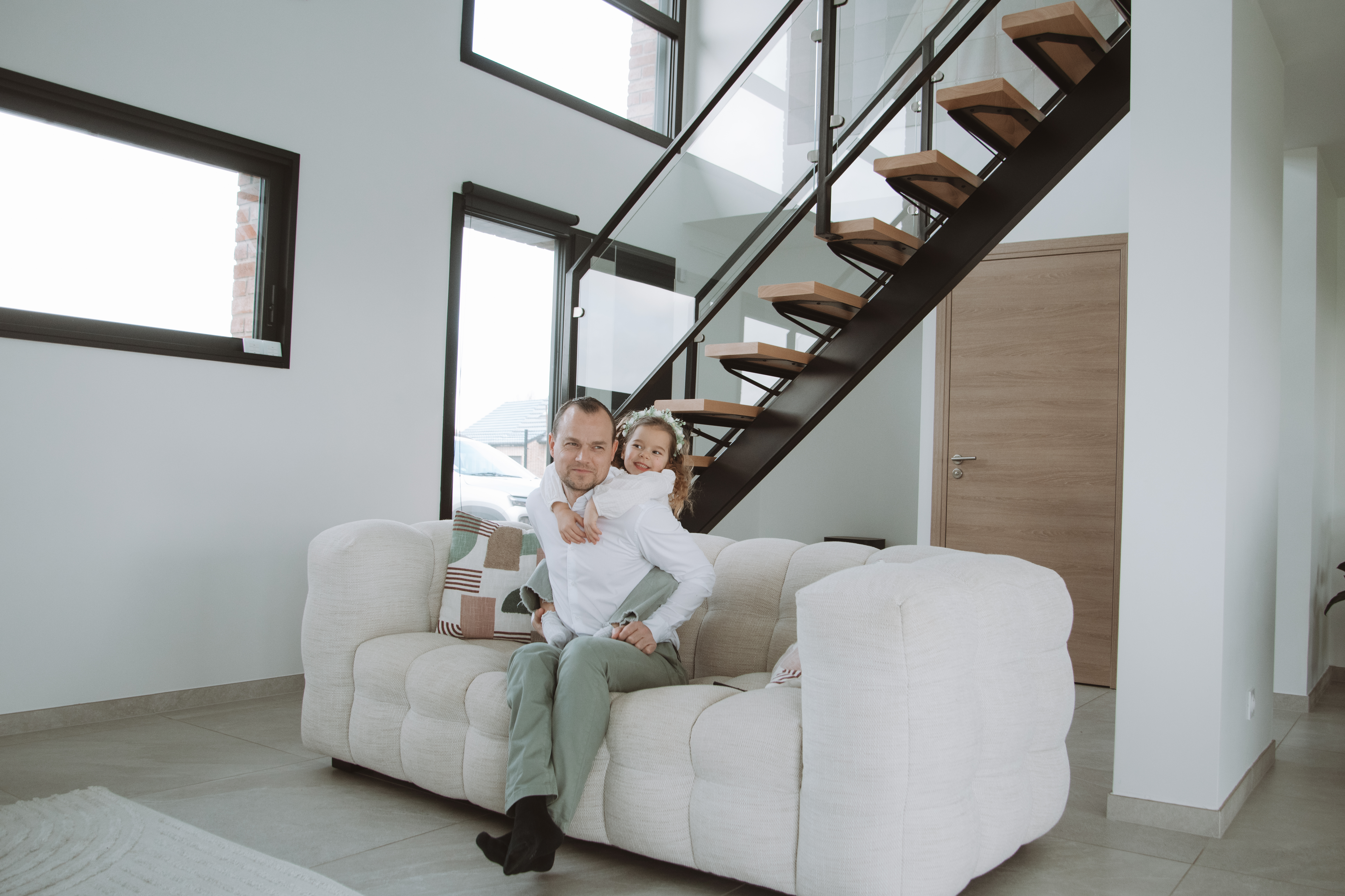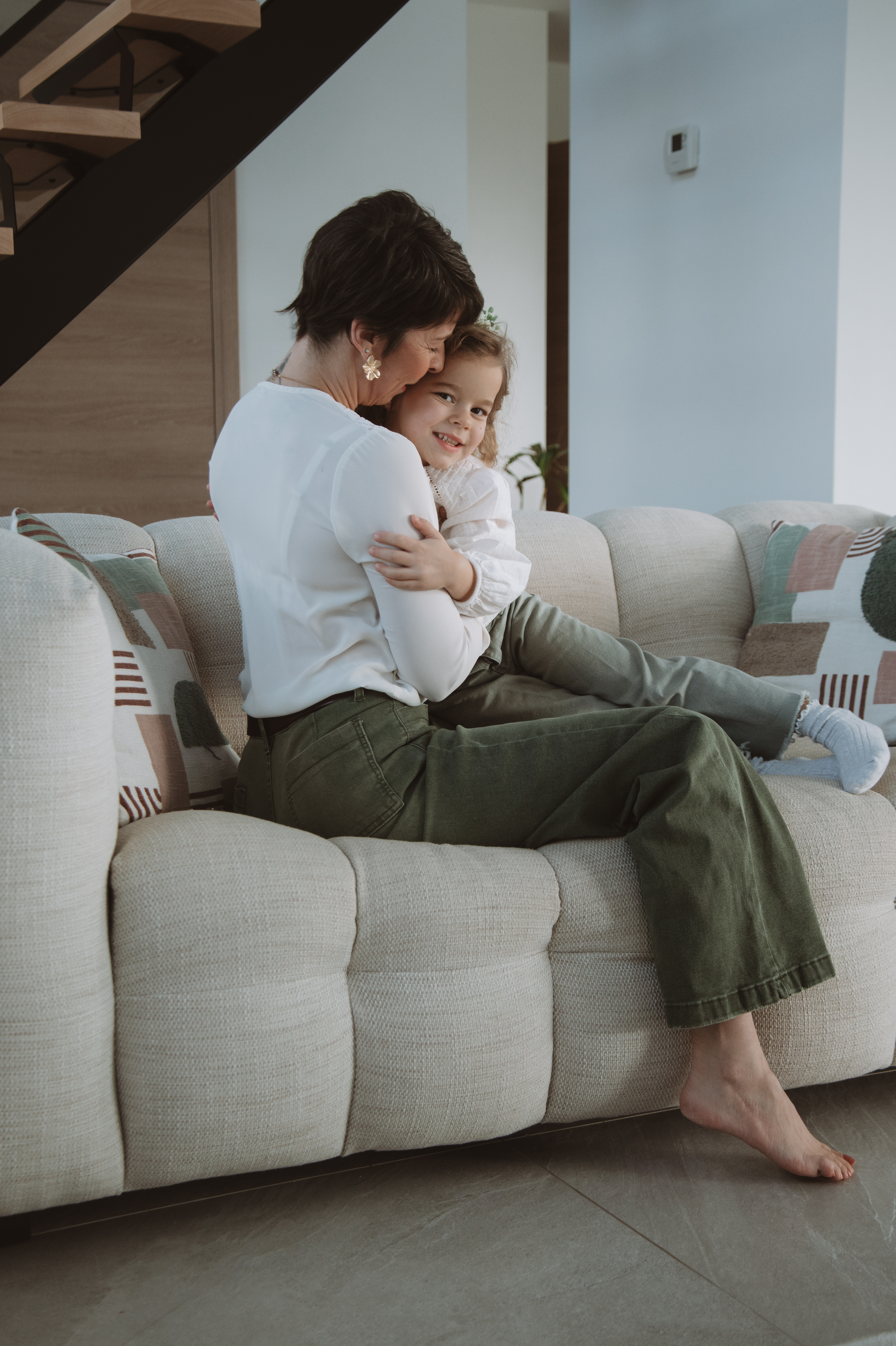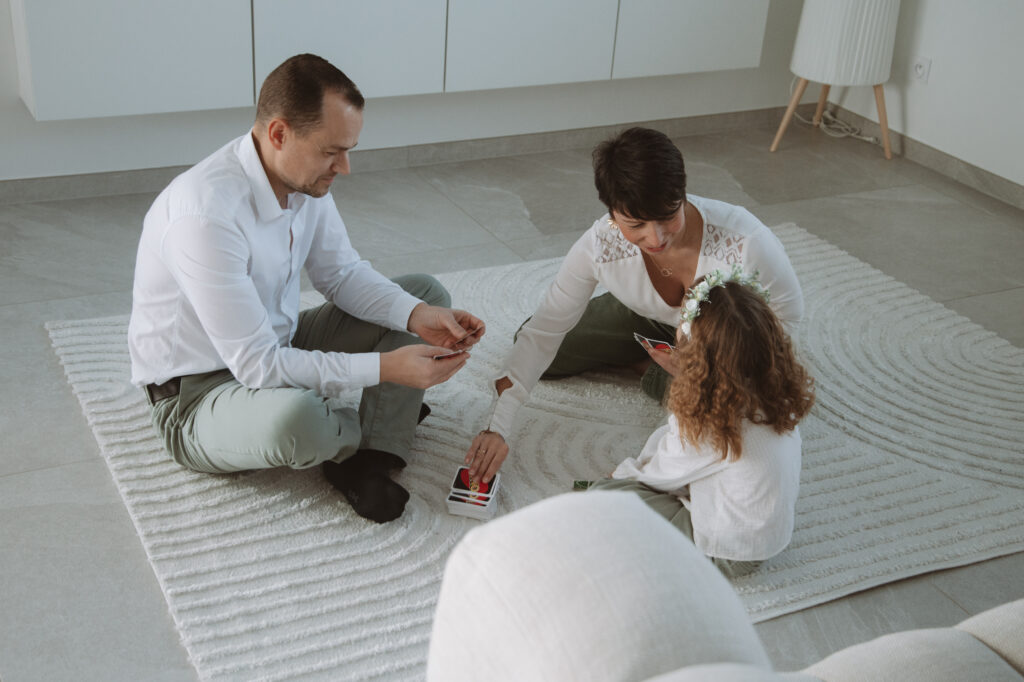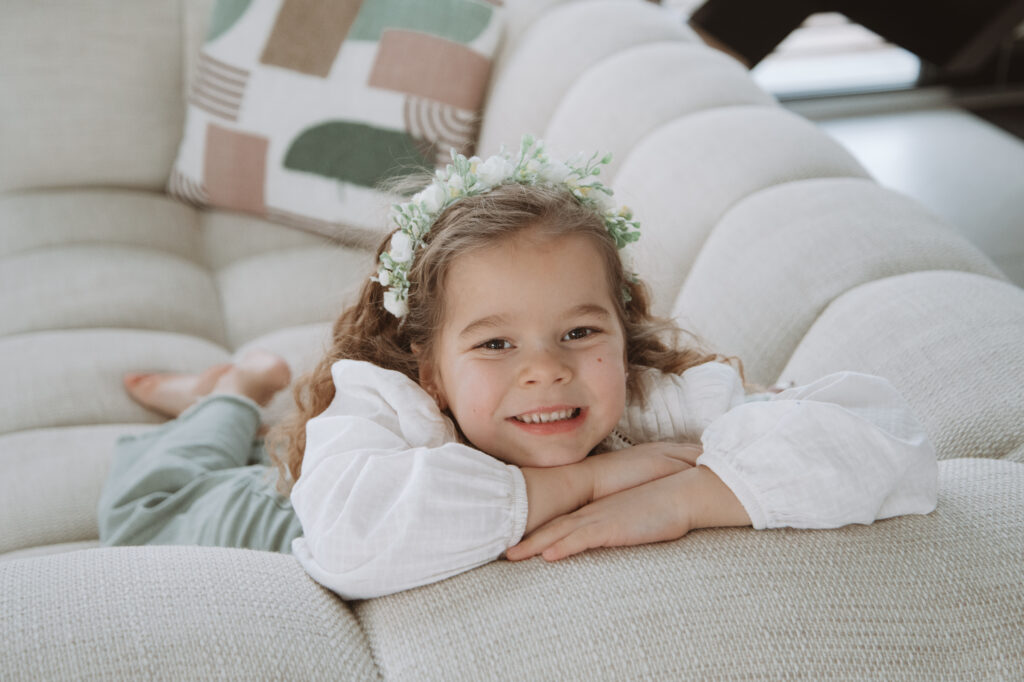 Pas de studio, pas de poses figées… seulement des moments authentiques : les rires dans le salon, les câlins sur le canapé, les jeux avec les enfants, la douceur du quotidien que l’on oublie trop vite!
